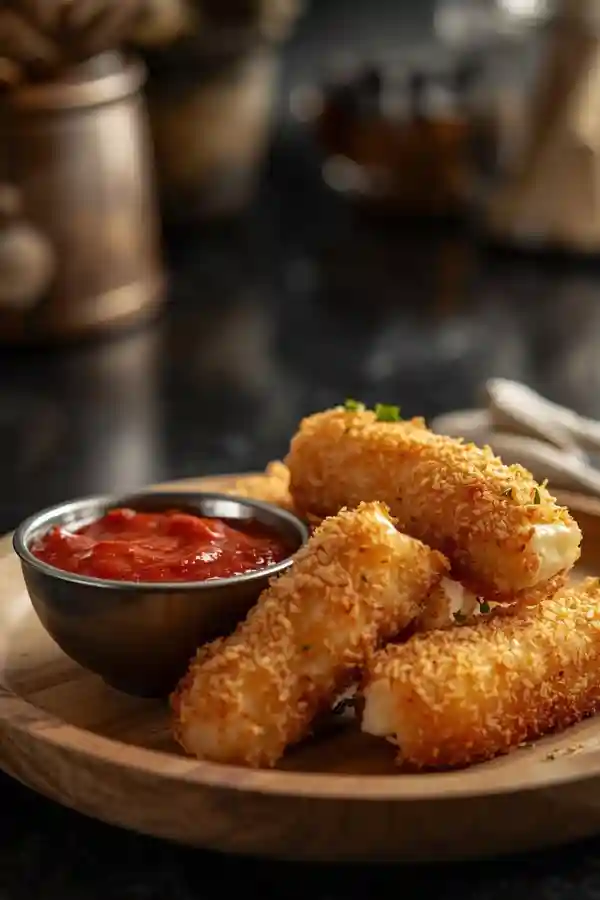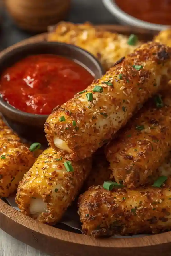 Crispy baked mozzarella sticks with a golden crust and melty cheese center. Easy oven recipe, freezer-friendly, and perfect for parties or snacks.