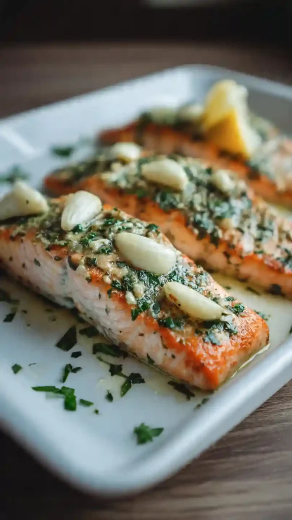 This salmon is tender and flaky with a light, buttery texture. The garlic adds warmth, while the herbs bring freshness without making the dish feel heavy. It’s savory, balanced, and mild enough for picky eaters, yet flavorful enough to feel satisfying.
