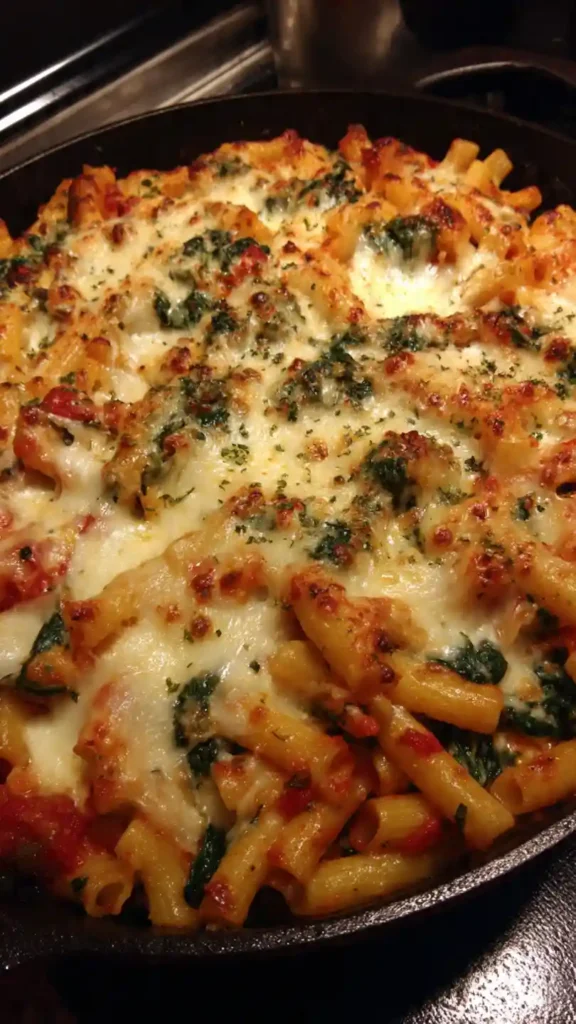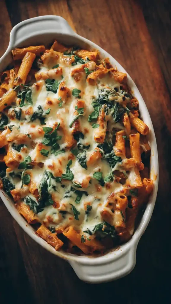 Baked ziti with spinach and ricotta is the kind of meal that feels warm, filling, and reliable. It’s a classic comfort dish layered with pasta, creamy ricotta, and melted cheese, all baked together until perfectly golden.