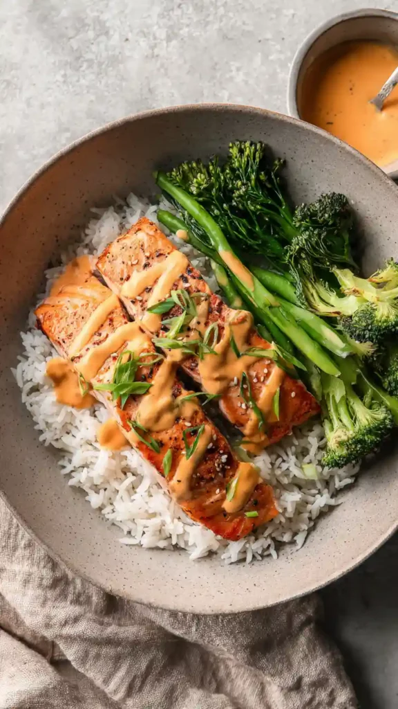 Bang Bang Salmon is a quick, flavorful dinner made with tender baked salmon topped with a creamy, sweet, and spicy bang bang sauce. Perfect for easy weeknight meals.