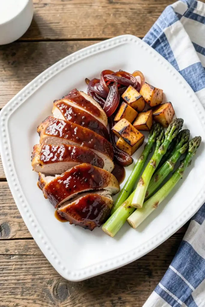 This sheet pan dinner is savory, slightly smoky, and lightly sweet from the barbecue sauce. The chicken stays juicy while the vegetables roast until tender with caramelized edges. The flavors are bold but approachable, making this a meal that works well for both kids and adults.