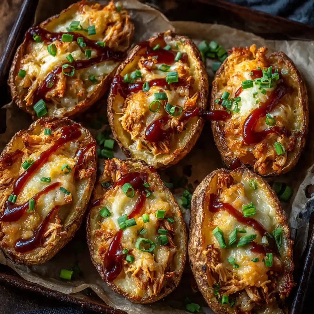 BBQ Chicken Stuffed Potato Skins are the kind of appetizer that instantly upgrades any snack table. Crispy potato shells filled with tender barbecue chicken, melted cheese, and bold flavor they’re hearty, satisfying, and always the first thing people reach for.