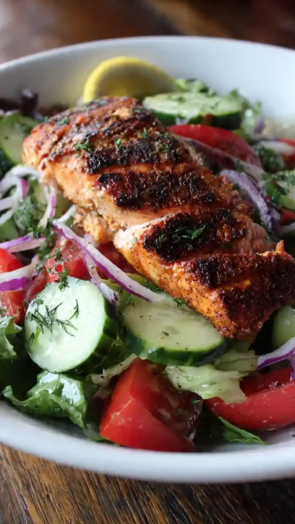 Blackened salmon salad is one of those dishes that feels impressive but is surprisingly easy to make. The salmon is coated in bold spices, seared until slightly charred, and served over fresh, crisp greens. It’s a perfect balance of rich, smoky flavor and refreshing crunch.