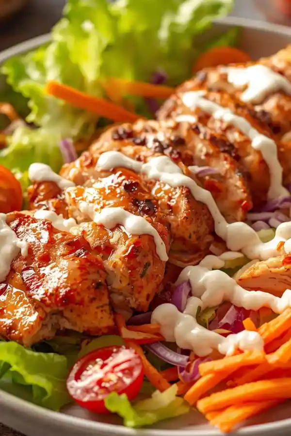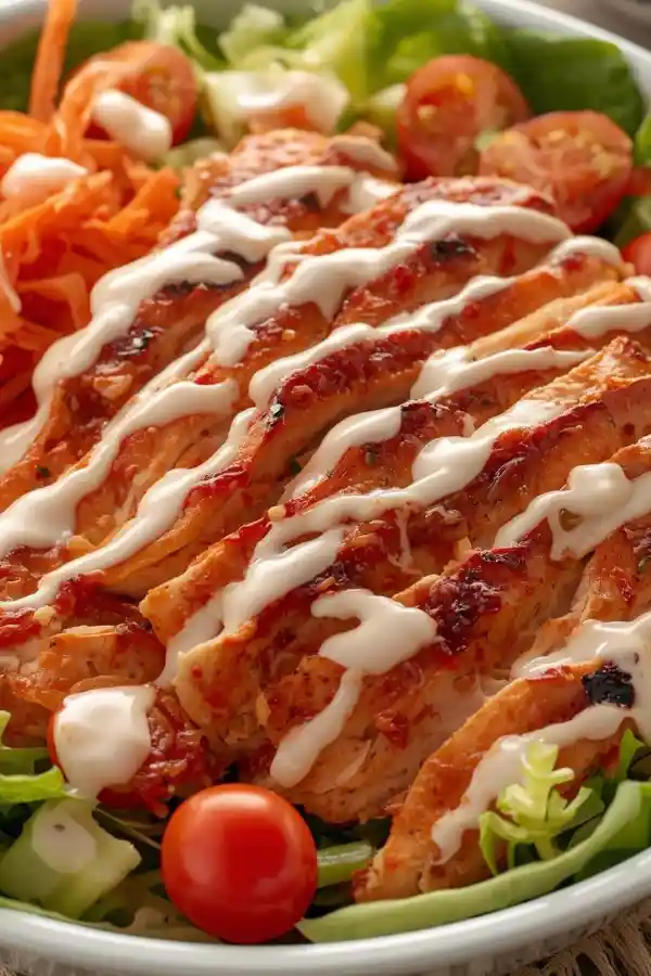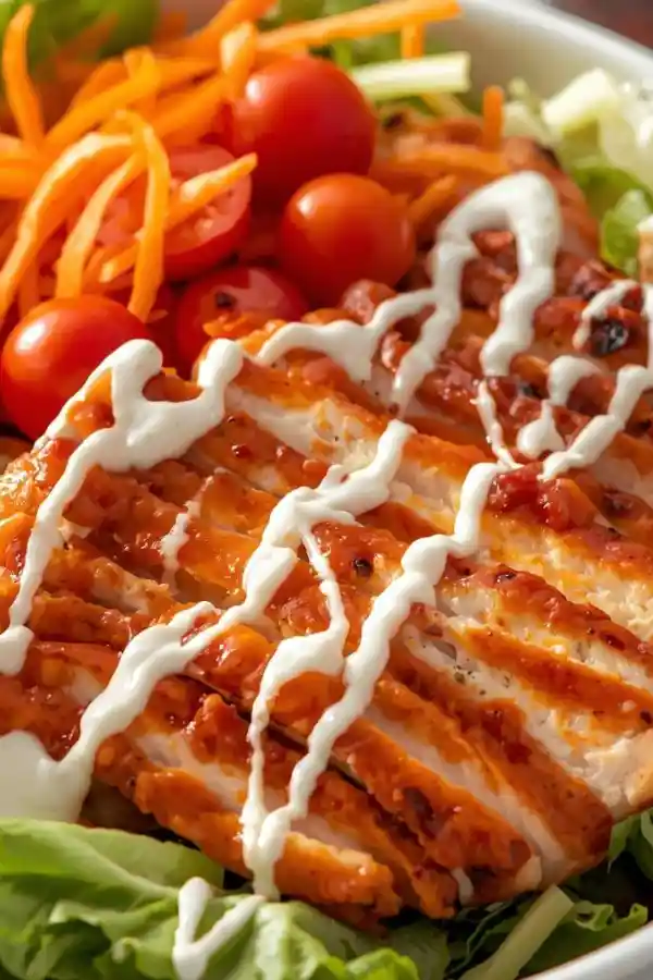 This recipe is built like a restaurant salad but simplified for home cooking. Juicy buffalo-coated chicken, crunchy greens, fresh vegetables, and a creamy dressing come together fast, making it perfect for weeknight dinners, meal prep, or anytime you want something satisfying without being heavy.