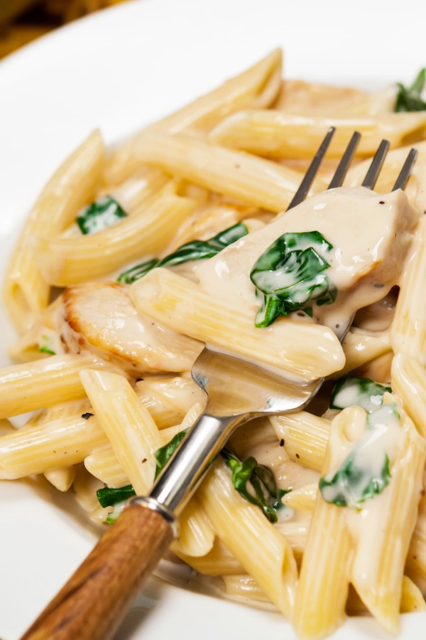 Spoon the creamy Alfredo chicken over your pasta. Sprinkle with parsley or extra cheese if you’re feeling fancy.