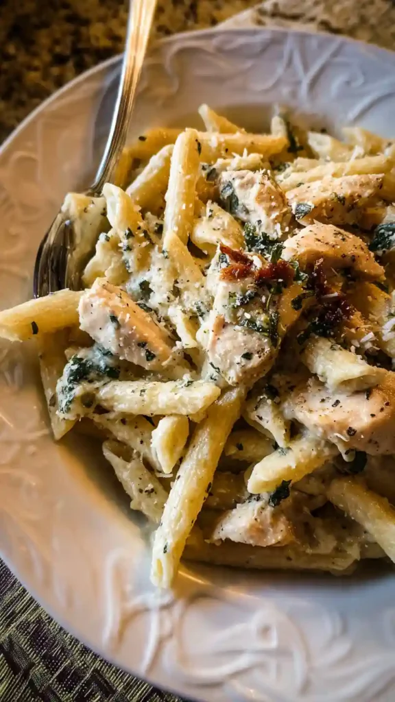 The chicken cooks quickly, the sauce comes together in one pan, and everything finishes tossed with pasta for a dinner that feels cozy and dependable. Whether you’re cooking for your family or just craving a comforting bowl of pasta, this recipe is one you’ll come back to again and again.