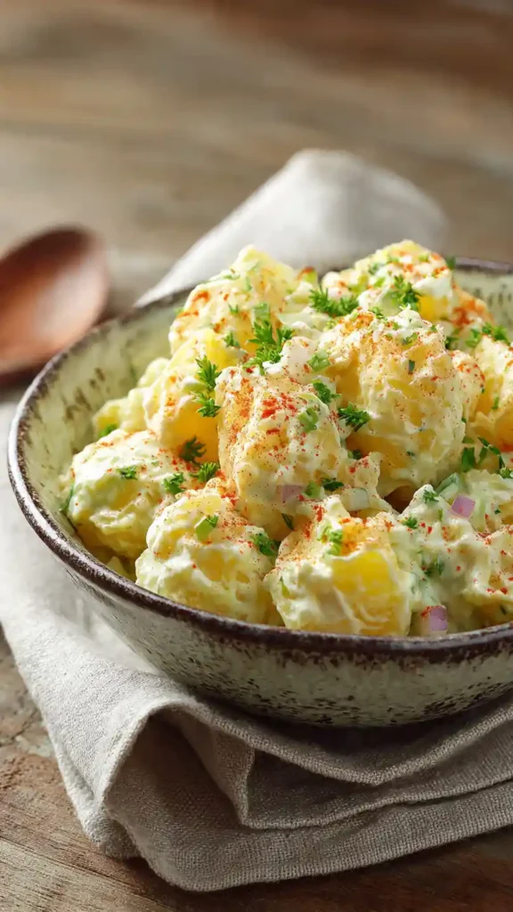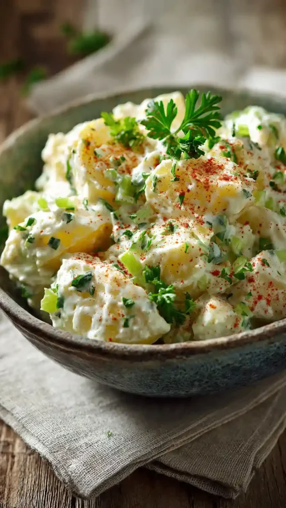 This version focuses on balance: soft potatoes, a creamy dressing that isn’t overly heavy, and just enough crunch from fresh ingredients to keep each bite interesting. Whether you’re serving it at a summer cookout or making it ahead for meal prep, this creamy potato salad delivers classic flavor with a smooth, satisfying texture.