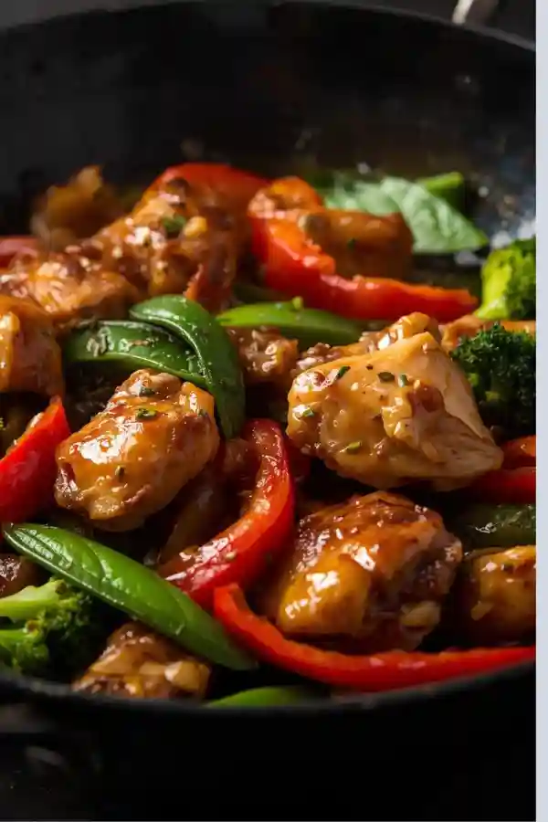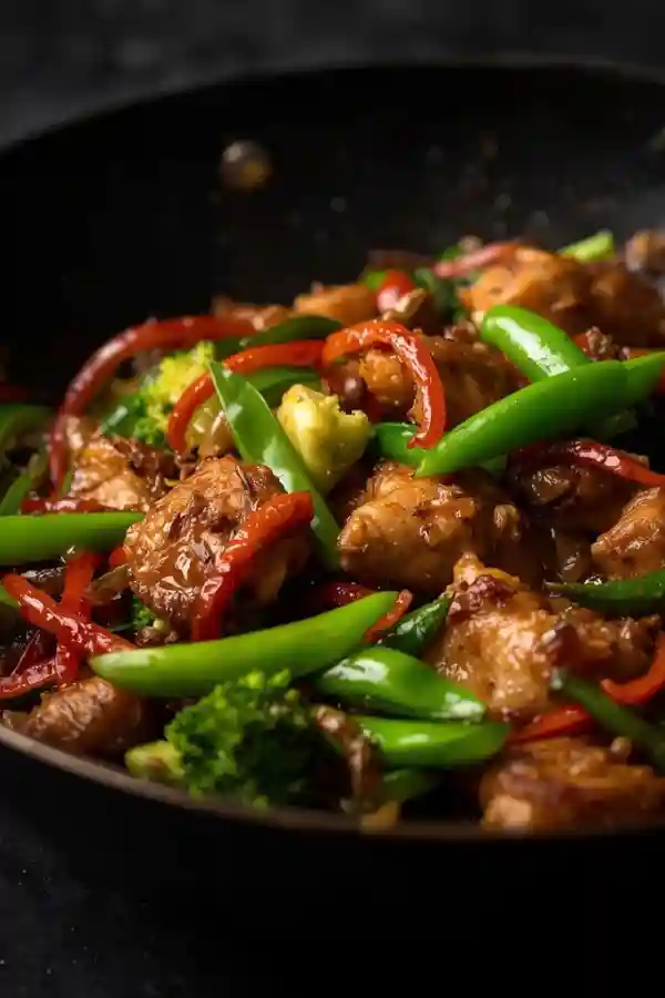 Slice the chicken into thin, even strips so it cooks quickly. Cut vegetables into similar-sized pieces for even cooking. Mince the garlic and ginger ahead of time to keep things moving fast.