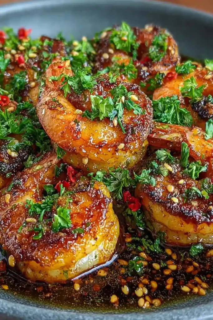 The shrimp themselves are tender and juicy, with a slight caramelization on the outside. Every bite delivers a mix of sweet, savory, and garlicky goodness that feels comforting but not heavy.
