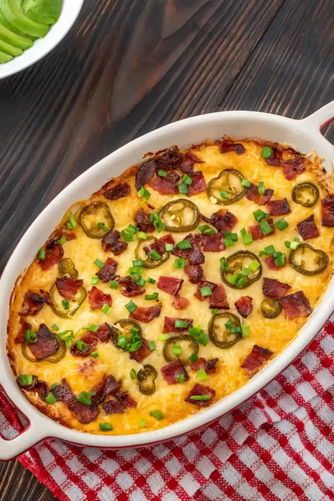 What makes this dip so reliable is how simple it is. Everything gets mixed in one bowl, spread into a baking dish, topped with a crunchy layer, and baked until hot and golden. The jalapeños add just enough heat without overpowering the dip, while cream cheese and sour cream create a smooth, rich base. If you love warm party dips, this one fits right in next to classics like spinach artichoke dip or a bold hot crab dip on any appetizer table.