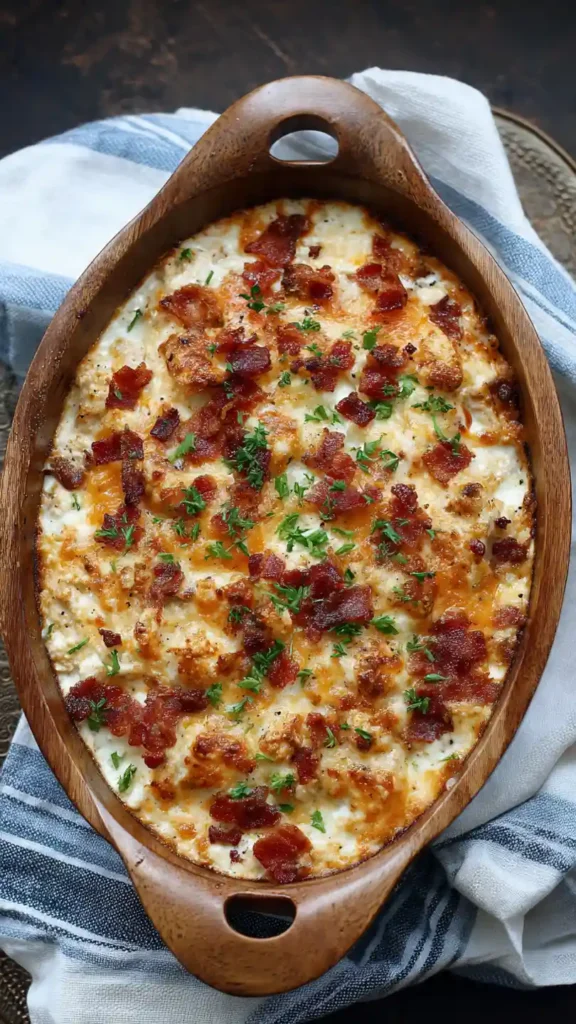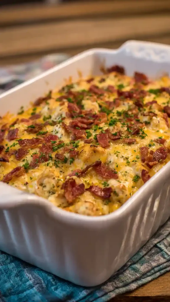 It’s creamy, savory, and slightly smoky from the bacon. The ranch flavor adds a mild tanginess, while the melted cheese creates a rich, comforting texture. Every bite is hearty and satisfying without feeling too heavy.