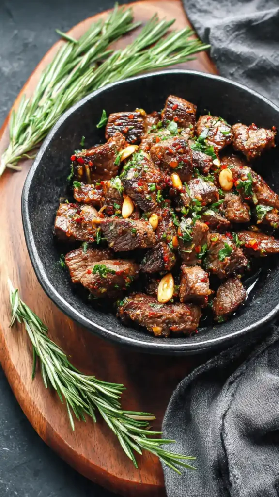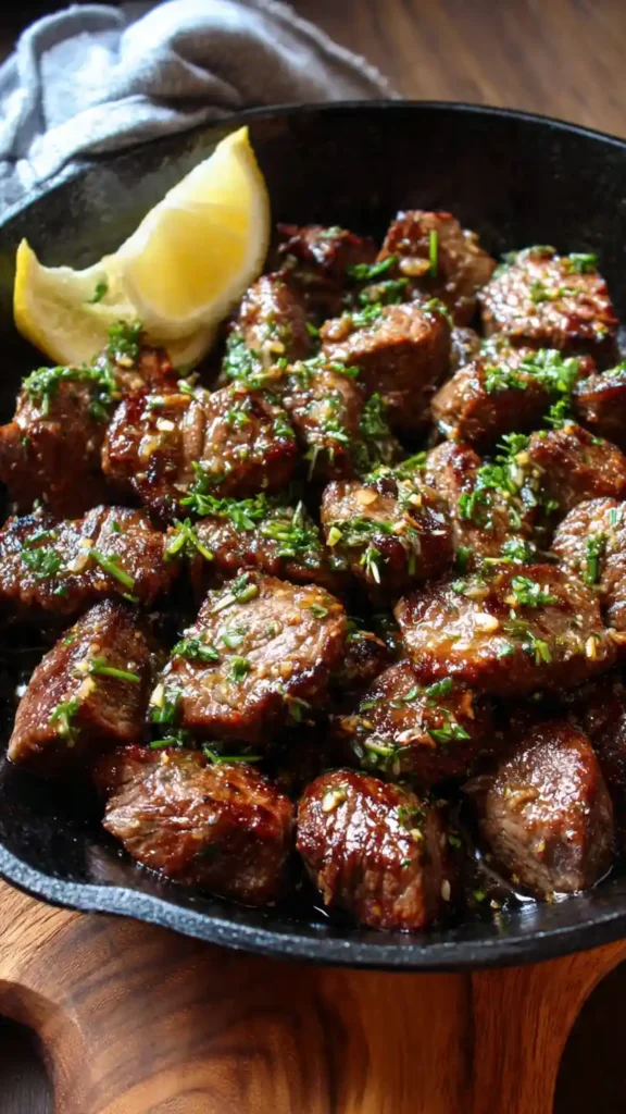 These steak bites are rich, buttery, and deeply savory. The outside gets a light crust while the inside stays tender and juicy. The garlic butter adds a bold finish without overpowering the natural beef flavor.