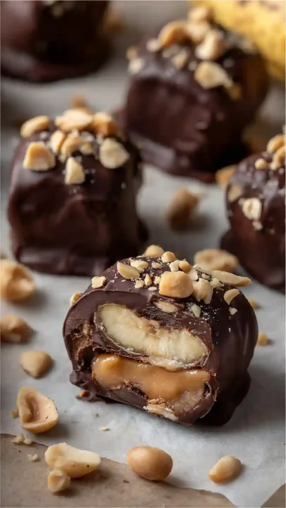 The frozen banana acts as the creamy base, peanut butter adds richness, chopped peanuts bring crunch, and a thin layer of dark chocolate ties everything together. The result? A sweet, salty, chocolatey bite that feels indulgent but won’t wreck your daily calorie goals.