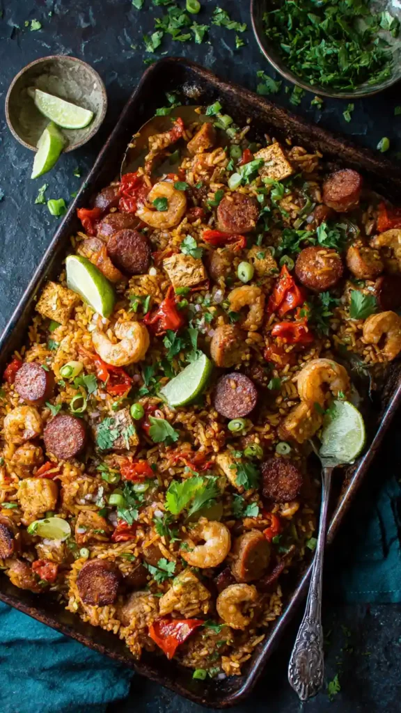 This version keeps the essentials smoky sausage, tender chicken, juicy shrimp, and seasoned rice while making the process much more approachable. It’s perfect when you want a hearty, flavor-packed meal without complicated steps.