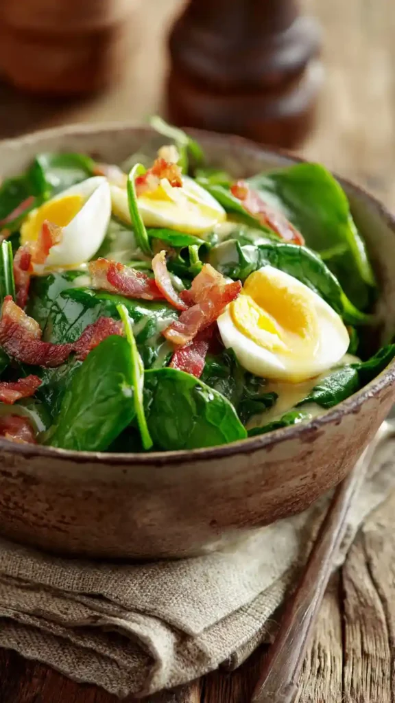 Spinach salad with warm bacon dressing is one of those timeless recipes that feels both rustic and elegant at the same time. The combination of tender spinach leaves, crispy bacon, and a warm, slightly tangy dressing creates a contrast that’s hard to beat. It’s simple, but when done right, it tastes restaurant-level good.