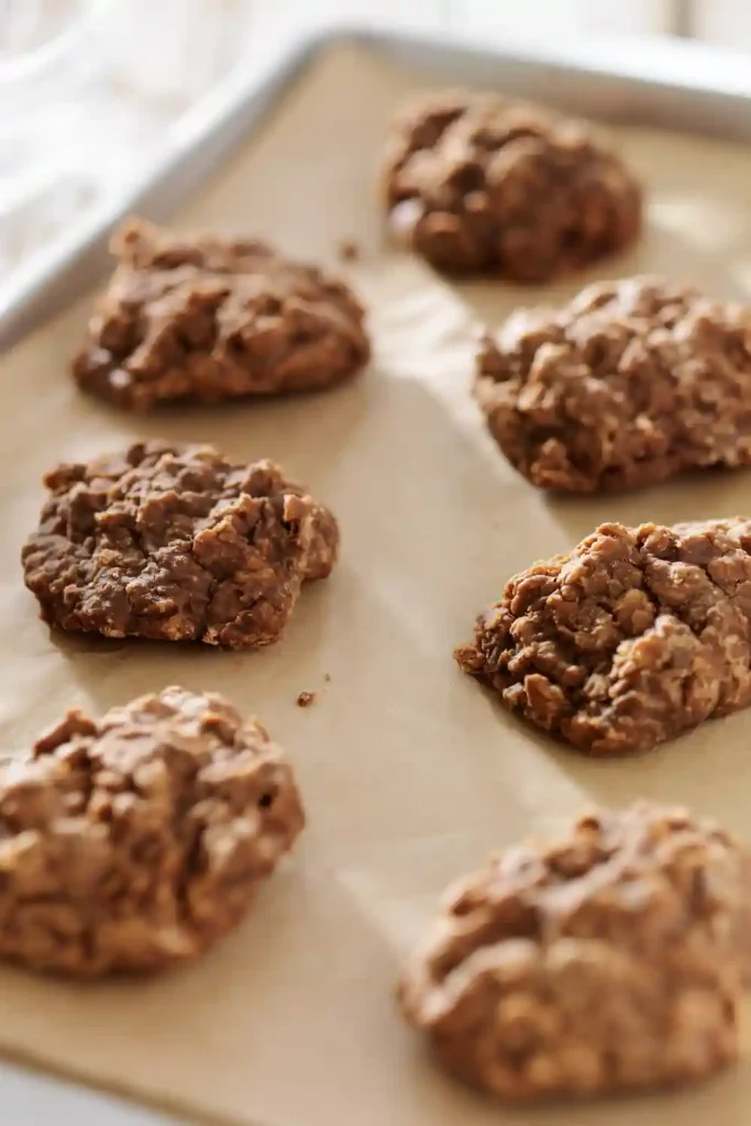 Use a spoon or scoop to drop the mixture onto the prepared tray. Flatten slightly if desired.